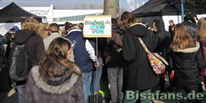 Es ist 12:00 Uhr! Tausende Fans strömen nun in die Sporthalle, wo