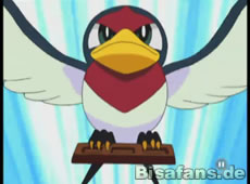 Rocko kocht aus seinen Resten eine leckere Suppe, als gerade der Schwarmführer der Schwalbinis auftaucht und Ash zu einem Kampf fordert. Klar, daß Ash mit seinem Pikachu annimmt.