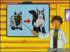 Max, der unbedingt ein Pokémon bei der Entwicklung beobachten will, hofft, daß sich das kleine Fiffyen von Katrina bald entwickeln Freunde noch etwas zu bleiben.
