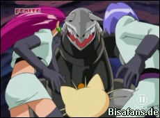 Jessie und James schicken Vipitis und Tuska in den Kampf, während Ash sich auf Pikachu verläßt. In diesem Moment reißt Troy seines Stolloss erledigt Troy das Problem Team Rocket.