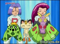 Damit all dies nicht in einem Happy End endet, taucht nun Team Rocket mal wieder auf und will sich die Samurzel schnappen. Ash wehrt sich mit seinem Krebscorps gegen das Panekon und Vipitis von Jessie. Mitten im Kampf kommt es zu einer kleinen Diskussion weil Jessie ja immer noch meint sie hätte ein Schaloko. Als es dann weiter mit dem Kampf geht entwickelt sich setzt den Kampf fort. Dabei verliert Team Rocket aber mal wieder haushoch.