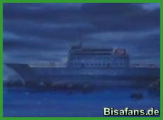 Abends entdecken alle im Dunkeln ein altes Schiff, welches auf Land gelaufen ist. Das Boot scheint verlassen, doch da entdecken unsere Freunde Tommy und sein Boot, welches hier ebenfalls angelegt hat um das Schiffswrack zu erforschen. Wie wir nun erfahren war Tommy damals Passagier auf diesem Schiff. Er ist nun zurückgekommen um sein Moorabbel zu finden, welches er damals zurücklassen mußte. Er verspricht Ash &Co. sie zum nächsten Hafen zu bringen, sobald er sein Pokémon gefunden hat.