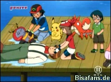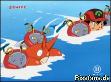 Doch nach einem weiteren Patzer Romeos fällt sein Stab ins Wasser und seine Volbeats stürzen ebenfalls ab. Als auch noch Romeo vom Steg ins Wasser fällt, holen Ash und Rocko ihre Pokémon aus den Bällen um alle zu retten. Hydropi taucht dabei tief in den See um Illumise heraufzuholen, die vorhin von einigen Volbeats K.O. geschubst wurde und ins Wasser stürzte.