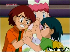 Maike versucht später Max zu beruhigen, doch es läßt ihn nicht locker, dass der freche Junge auch so heißt. Als die beiden aber herausfinden, dass Max ein Gehweiher besitzt, versucht Maike die beiden zu versöhnen. Doch Max läßt unsere Freunde nicht an sein Gehweiher heran und ein neuer Streit scheint auszubrechen. Als Ash und Rocko auch auftauchen, hat Rocko eine tolle Idee. Sie lassen alle ihre Pokémon aus den Pokebällen, damit sich alle kennenlernen können.