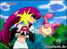 Gerade als sich alle miteinander anfreunden, tauchen aber Jessie und James auf um das Gehweiher zu klauen. Ash und Pikachu versuchen es zu verhindern, was allerdings nicht klappt. Eneco, die mit Jessies Haaren spielen will, gelingt es hingegen prima, da es Jessies Frisur total ruiniert.