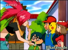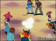 Es dauert auch nicht lange und Team Rocket versucht das Qurtel von Flavia zu stehlen. Mr. Moore (als Schiedsrichter) sieht dies jedoch und enttarnt Team Rocket. Leider kann Team Rocket jedoch mit Vipitis' Dunkelnebel entkommen.