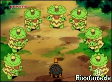 Noch während sich alle Pokémon über Reptains super Leistung freuen, taucht Team Rocket auf und fängt alle Pokémon in einem Netz. Dank Reptains Laubklinge kann es jedoch alle befreien und Team Rocket fliegt nach einigen Attacken von Reptain chancenlos davon. Für Reptain gibt es eine kräftige Runde Lobpreisungen. Qurtel kommen sogar die Tränen.