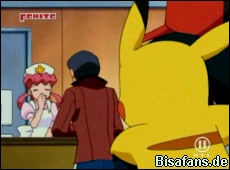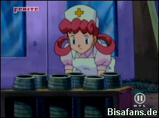 Etwas später geht Ash in das Pokémon Center und sieht dort Norman und Schwester Joy. Beide scheinen sich köstlich zu amüsieren. Als Ash wissen will, was die beiden bereden, verweigern beide freundlich die Antwort.