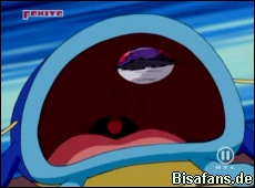 Während Ash über das kleine Karpador lacht, beißt auch bei Ash etwas an. Wie sich zeigt, hat Ash nun Nero an der Angel. Dieses wehrt sich und zieht das Boot, aus dem alle angeln, hinter sich her. Ash will aber nicht aufgeben und läßt sein Krebscorps sich selbst mit einem Krabbhammer angreifen um sich an Land zu katapultieren. Durch den Schwung kann er auch Nero an Land schleudern und mit Reptains Hilfe muss Welsar kurz darauf die Orden fast rausrücken... Fast, weil nun Team Rocket mal wieder auftaucht um sich ebenfalls das riesige Welsar Nero zu schnappen. So fliegen diese mit ihrem Heißluftballon und dem gefangenen Welsar davon.