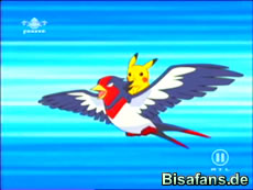 Es dauert ein wenig, doch gerade als Team Rocket den Roboter per Greifarm ihres Ballons packen wollen, stellt Ash sie zum Kampf. Mit Schwalboss und dem darauf sitzenden Pikachu wird Team Rockets Ballon in der Luft regelrecht zerlegt. Nachdem nun alle ihre Pokémon wiederhaben, kann der Arenakampf fortgesetzt werden.