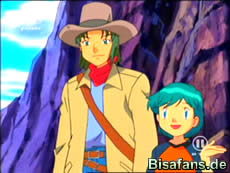 Etwas später führt Nicky Ash, Rocko, Maike und Max durch die Canyons. Gerade als Rocko eine Pause einlegen will, bemerkt er, dass die Felsen feucht sind. Offenbar ist hier in der Nähe eine Wasserquelle. In diesem Moment taucht das Absol auf einem Felsen auf. Nicky bittet es, nicht zu flüchten und es kommt tatsächlich näher. Ash drehen seine Nerven jedoch durch als das Absol zu nah kommt, und Pikachu macht einen Warnschuß, der das Absol zum Stoppen zwingt.