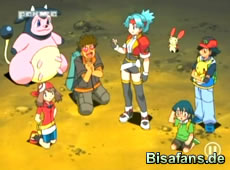 Ash, James, Jessie, Maike, Max, Ranger Solana, Rocko, Schwester Joy
