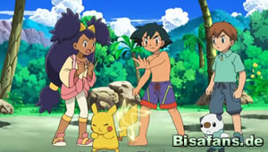 Als plötzlich ein heißer Wasserstrom auftaucht, werden die ehemals gefangenen wilden Pokémon in einer Insel, umgeben von heißem Wasser gefangen. Die Ganovil, unter Führung des Ganovil mit Brille, bilden jedoch eine Brücke, indem sie sich gegenseitig in den Schwanz beißen. Es bedarf aber noch der Überzeugungskraft von Ash und Pikachu, bis die ehemals gefangenen wilden Pokémon sich trauen die Brücke zu nutzen.