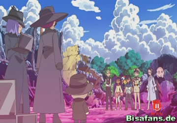 Arenaleiter Benny, Ash, Giovanni, James, Jessie, Lilia, Officer Rocky, Schwester Joy