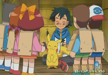 Der Tag neigt sich seinem Ende zu. Daniela sieht endlich ein, dass Unratütox doch kein so schlechter Umgang für ihre Kinder ist, schließlich hat auch es alles daran gesetzt, für die Sicherheit der Kinder zu sorgen. Die Kindergärtnerin entschließt sich – wenn auch vielleicht etwas zögerlich -, Unratütox in ihrer Mitte aufzunehmen. Dem Müllproblem entledigen sich Ash und seine sich etwas sträubenden Reisegefährten und so ist der wieder einmal Tag gerettet. Als Dank für alles, was er zum Wohle des Kindergartens geleistet hat, erhält Ash von Danielas Großmutter Carina ein Pokémon-Ei, dessen Inhalt genauso mysteriös wie das Ei selbst ist. Was hoffentlich schon bald daraus schlüpfen wird, gibt Carina allerdings nicht Preis.