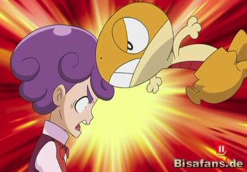 Während Benny die Verpflegungsvorräte der Gruppe aufstockt, reiht sich Ash zwischenzeitlich, ächzend und über die ihm schier endlose Schlange stöhnend, in die Liste der Wartenden ein. Lange Wurzeln schlagen muss er allerdings glücklicherweise nicht, denn ein weiterer Laden, direkt neben dem anderen, ruft ihn als den letzten in der Warteschlange herein. Viel Sehenswertes hat der kleine Laden auf den ersten Blick zwar nicht zu bieten, doch darum geht es ja schließlich auch nicht. Tramina, die praktizierende Pokémon-Kennerin dieses Geschäfts, nimmt Ash sogleich stürmisch in Empfang und startet auch sofort das Kreuzverhör. Der erste Eindruck des Besuchers auf die Kennerin wirkt zwar sehr professionell, doch je länger das Gespräch zwischen Trainer und Kennerin dauert und mit mehr von Ashs Pokémon es Tramina zu tun bekommt, desto rauer und ruppiger wird der Umgangston. Von F wie Floink bis hin zu Z wie Zurrokex sind auch alle Pokémon von der doch recht fragwürdigen Meinung der Kennerin zutiefst beleidigt und haben ihre ganz eigenen Methoden, dem Menschenmädchen ihren Standpunkt klar zu machen. Die Gemüter sind schon am Überkochen, als nun auch Benny und Lilia wieder zu Ash stoßen. Mit Bennys Erscheinen kocht das Fass nun aber endgültig über, denn wie es sich herausstellt, hat zumindest Tramina noch eine alte Rechnung mit Benny zu begleichen.