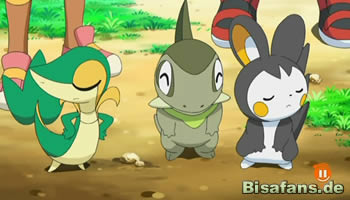 Auch Emolga scheint ein Gefühl von Dankbarkeit zu empfinden, als sie Serpifeu als ein Zeichen der Freundschaft – vielleicht aber auch nur des Waffenstillstandes – einen Apfel reicht. Serpifeu nimmt an, es soll Friede herrschen – zumindest fürs Erste.