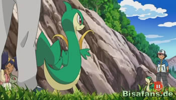 Diesen gut gemeinten Ratschlag nehmen Ash und Lilia auch an; in die Hand, die einen füttert, beißt man ja schließlich bekanntermaßen nicht. Die nächste Katastrophe lässt allerdings nicht lange auf sich warten: Als Ash seiner Reisegefährtin nacheifern will und via Lianen-Express von Baum zu Baum schwingen möchte, verliert er kurzerhand den Halt und landet ausgerechnet vor die Füße seines Rivalen Diaz, der gerade dabei war, mit der Hilfe seines Gelatinis ein wildes Mebrana zu fangen, was ihm auch fast gelungen wäre, hätte nicht Ash versehentlich diesem Pokémon mit seinem plötzlichen Auftauchen zur Flucht verholfen. Diaz verharrt relativ gelassen, nutzt aber gleichzeitig die Gelegenheit, um über Ashs Kenntnisse und seinen Wissensstand zu spotten. Gleichzeitig betritt Lilia die Bühne, die sich sofort auf große Distanz zu Diaz und Gelatini übt. Eis-Pokémon, so Lilia, jagen ihr, als angehende Drachen-Meisterin, einen kalten Schauer über den Rücken. Diaz, der die ganze Unterhaltung belauscht, ist neugierig und gewillt, Lilia zu einem Kampf herauszufordern, da er noch nie die Ehre hatte, gegen ein Drachen-Pokémon zu kämpfen. Diaz’ vorherige Kämpfe gegen Ash sind Lilia aber noch gut im Gedächtnis und als sie sich das, was sie ihm entgegenzusetzen hätte, nämlich Milza, noch im Aufbautraining, Stalobor, ihre Anweisungen nach wie vor ignorierend, und Emolga, die auch einen etwas eigenen Willen besitzt, vor Augen führt, lehnt sie Diaz’ Herausforderung mit einem klaren Nein ab. Sichtlich enttäuscht zieht Diaz ab, nicht ohne allerdings auf eine Herausforderung, die Ash ihm unterbreitet, mit einem müden Lächeln zu verzichten: Reine Zeitverschwendung in seinen Augen. Nun ist es Diaz, der Lilias Spott ertragen muss. Hinter seinem Rücken lässt die angehende Drachen-Meisterin ihre spitze Zunge rund laufen und zieht nicht zu knapp über Diaz her. Dieser Hohn entfacht in Diaz ein Feuer. Ein Feuer, das ihn schließlich doch noch dazu bewegt – wenn auch mit leichtem Widerwillen -, sich Ash erneut in einem Kampf entgegen zu stellen.