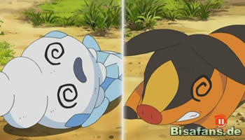 Diaz, der sich trotz dieses Unentschiedens als klarer Gewinner präsentiert, schiebt diese innerlich wohl doch herbe Erfahrung auf Ashs Kampfstil, dessen er sich durch den Einsatz von Gelatini aneignen wollte. Er wird sich in Zukunft wohl auf seine Art zu kämpfen verlassen müssen, meint er. Ein noch langer Weg steht ihm bevor, will er sich irgendwann tatsächlich mit dem Champion der Einall-Region messen. Ein wahrhaftiger Kampf mit Erkenntnissen für Ash. Er gibt sich sehr zufrieden, schließlich konnte er durch dieses Geplänkel viel Erfahrung sammeln. Ottaro bei seinem kleinen Wasserdüse-Problem zu helfen, steht auf Tagesordnungspunkt Nummer zwei – gleich hinter Benny, an den man sich erst durch ein wütendes Aufheulen des eigenen Magens plötzlich erinnert.