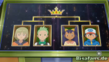 Diaz ruft erneut sein Serpiroyal, während Benny zu Castellith wechselt. Benny ist gut gestimmt, während Diaz mit der gewohnten Kombination aus Silberblick und Solarstrahl loslegt. Da sich Castellith jedoch in seinen Panzer zurückzieht ist der Effekt nicht so groß, aber größer als Benny erhofft hatte. Jedenfalls greift nun Castellith mit der mächtigen Kreuzschere an, der Serpiroyal jedoch bequem ausweichen kann. Auch dem folgenden Steinhagel kann Serpiroyal ausweichen, bevor es mit einem Pflanzenwirbel seinerseits in die Offensive geht. Castellith kann der Attacke nicht ausweichen und geht K.O. Damit steht der erste Finalist mit Diaz fest!
