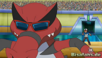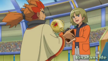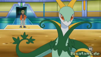 Kurz nach der Pokalübergabe kommt es dann auch schon zum Kampf zwischen Champ Lauro und Diaz. Lauro setzt dabei sein Bisofank ein, während Diaz sich erneut auf Serpiroyal verlässt. Der Kampf startet mit einem schnellen Solarstrahl von Serpiroyal. Ob dieser trifft oder wie der Kampf ausgeht, erfahren wir jedoch erst in der nächsten Episode.