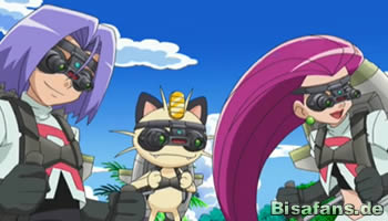 Ash, Benny, Butler Johann, Cynthia (Champ), Giovanni (Team Rocket Boss), James, Jessie, Lilia, Raffael, Team Rocket Rüpel