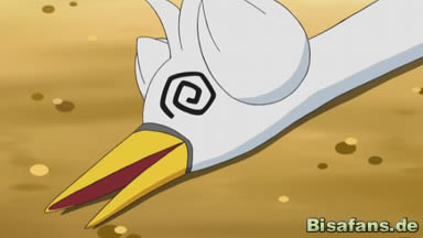 Da jetzt beide Trainer noch jeweils drei Pokémon haben, nimmt Carsten als viertes Pokémon Swaroness, welches sich sogleich in die Luft erhebt. Der Schwan setzt mit Pflücker zum Sturzflug an, jedoch kann Pikachu noch ausweichen. Swaroness wiederholt die Attacke, allerdings trifft diese ihr Ziel nicht. Pikachu greift jetzt mit Ruckzuckhieb an, doch Swaroness weicht ihm mit Fliegen aus und antwortet mit Flügelschlag. Es folgt ein Blubbstrahl und dann wieder Flügelschlag, dem Pikachu ausweicht und währenddessen Elektroball auf den Schwan zufliegen lässt, welcher ihn besiegt.