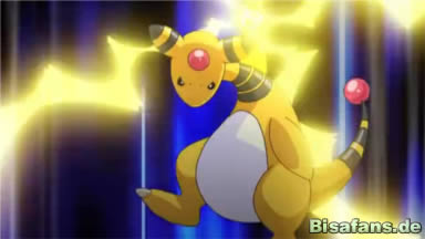 Nach Team Rockets üblichem Spruch, erklären sie den Vier ihren Plan und zögern nicht ihn sogleich in die Tat umzusetzen. Über die Kraft der Voltilamm schießen sie aus ihrem Gerät einen starken Elektrostrahl auf Pikachu ab, Ampharos springt jedoch dazwischen und versucht ihn mit einem Donnerschock zu blocken, was aufgrund der Stärke des Angriffs nicht gelingt. Sofort wird ein neuer Strahl abgeschossen, den Pikachu jedoch mit Donnerblitz parieren kann. Es folgt ein weiterer Angriff, welcher stärker erscheint, Pikachu gerät in Bredouille, doch im letzten Moment kann es die Elektroattacke mit aller Kraft auf Team Rocket zurückwerfen, was eine kleinere Explosion zur Folge hat.