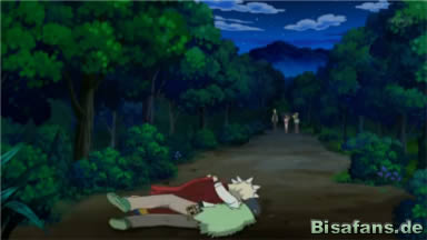 Ash, Lilia und Benni laufen ebenfalls einen Waldweg zu selben Tageszeit entlang, als vor ihnen auf einmal N und Washakwil auf den Weg stolpern. Kraftlos liegen die beiden dort. Sie erkennen N natürlich sofort und bieten ihm Hilfe an, doch er sagt, es sei wichtig, dass Washakwil behandelt wird. Um ihn könnte man sich auch später noch kümmern. Sie beschließen ohne weitere Fragen zu stellen so schnell wie möglich zum nächsten Pokémon-Center zu laufen. Im Pokémon-Center wird das Washakwil von Schwester Joy behandelt und obwohl es wohl nicht sofort wieder fliegen können wird, wird Washakwil auf jeden Fall schnell wieder gesund werden. Daraufhin bekommt auch N seine Behandlung an seine verletzten Handoberflächen.