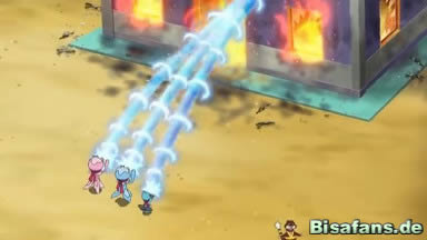 Somit kann der Maulwurf zu Halsey vordringen. Es kommt gerade rechtzeitig zu der Feuerstelle, als Ottaro im Begriff ist aufzugeben. Zwottronin und die beiden Quabbel können mit Hydropumpe das Feuer löschen, während Kukmarda mit Sandwirbel nachhilft.