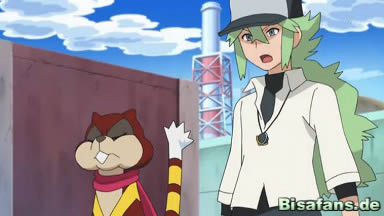 Pikachu will mit Donnerblitz Team Rocket in den Himmel schicken, doch sie weichen den Blitze aus und machen sich mit ihren Raketenrucksäcken davon. Da der Generator Feuer gefangen hat, soll Ottaro es mit Hydropumpe löschen, doch es schafft es alleine nicht. Ash ruft daher Halsey mit einen gebäudeinternen Telefon an und bittet um Hilfe, aber er und sein Team sind nun im Gebäude gefangen. Statt sich um die Evakuierung zu kümmern, will Ash ihnen helfen und Benny schlägt vor, dass Stalobor mit Schaufler nach Halsey graben soll. Doch das Feuer wird immer größer und Stalobor stößt auf eine Stelle, wo es nicht weitergraben kann. Währenddessen hält Kukmarda und eine Wache die schaulustigen Leute zurück und N fragt um Hilfe. Er bringt es zu Stalobors Tunnel und erklärt ihn, dass er mit seinen Spürsinn eine Stelle suchen soll, wo Stalobor graben kann. N übergibt die Informationen an Lilia und schafft es Stalobor zu dirigieren.