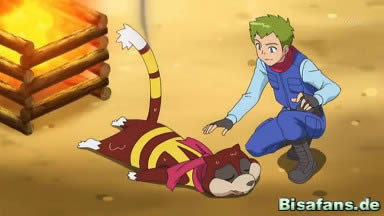 Unsere Freunde rennen zu der Unfallstelle und entdecken, dass ein Haus brennt. Um das Feuer zu löschen, ruft Ash Ottaro, doch ein Kukmarda versperrt ihm den Weg. Ash fragt seinen Pokédex, was für ein Pokémon Kukmarda ist.