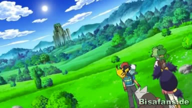 Zu Beginn sieht man Ash und seine Freunde wieder auf der Wiese stehen und man kann Ash dabei beobachten, wie er erneut über N nachdenkt. Er ist der festen Überzeugung, dass dieser ihn verstehen wird, wenn sie sich das nächste Mal treffen. Kurz darauf macht Milza die drei Freunde auf das große Gebäude im Hintergrund aufmerksam und zusammen machen sie sich auf den Weg dorthin.