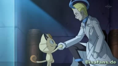 Mauzi bewundert die Maschine, die Pokémon manipulieren kann. Achromas ist daraufhin verwundert, antwortet allerdings Mauzi, dass er ihn für sein weiteres Experiment benutzen möchte. Als Gegenleistung dafür, soll er allerdings zu Team Rocket gehören – daraufhin geben sich die Beiden die Hand.