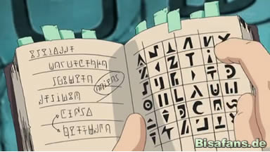 Sie gehen in eine Passage in den Ruinen, und auf dem Weg unterhalten sich die vier. Beim Professor angekommen möchten sie ihn begrüßen, doch er warnt sie, nicht näher zu treten, was mal wieder nur eine Floskel ist. Er erinnert sie lachend an die Regel Nr. 1 der "Basis von Abenteuern". Benny sagt sie auf: Man solle Menschen immer ausreden lassen. Der Professor bestätigt und bedankt sich für das Kommen der drei. Diese möchten nun wissen, was die "Entdeckung des Jahrhunderts" genau sei. So wird ihnen prompt von den Steintafeln erzählt und dass dahinter etwas liegt, was mit Reshiram zu tun hat. Dieses, sagt er, sei ein legendäres Drachenpokémon; die Flammen, die seinem Schwanz entstammen, sollen alles in Asche verwandeln.