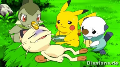 Die Pokémon sind inzwischen an einem Fluss angekommen, den sie überqueren müssen, wie Mauzi behauptet. Ottaro schwimmt gleich hinüber, doch Mauzi erklärt ihm, dass es nichts bringt, wenn nur es hinüberkommt. So wollen die vier schließlich gemeinsam mit Hilfe eines Stücks Holz über den Fluss kommen. Dabei krachen sie beinahe in einen Felsen, und es gelingt nur mithilfe von Teamwork, das Unglück abzuwenden. Anschließend treffen sie auch noch auf eine Gruppe von Remoraid, die die Pokémon mit Aquaknarre beschießen. Dabei fällt Mauzi beinahe ins Wasser, doch Milza kann es gerade noch retten. Als die Pokémon schließlich am Ufer ankommen, mein Mauzi, was für ein tolles Team sie doch abgeben, doch Pikachu ist noch immer skeptisch.