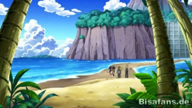 Anschließend wird direkt vor dem Schiff die Insel im Nebel sichtbar und die Freunde beschließen, von Bord zu gehen und die Bewohner der Insel zu fragen, ob der Schatten, den sie gesehen haben, ein Pokémon ist, das auf der Insel lebt. Dabei werden sie von jemandem mit Mantel und Hut, sodass er nicht erkennbar ist, belauscht.