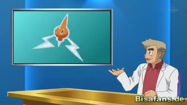 Schließlich begeben sich die Freunde und der Professor ins Pokémoncenter. Dort offenbart sich den Kindern schließlich Professor Eichs Absicht. Dieser möchte ein Rotom fangen, die auf dieser Insel, aufgrund der imposanten Strommasten praktisch immer anzutreffen sind.