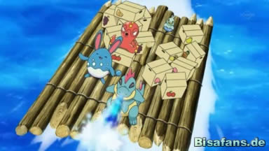 Das Schiff wird beobachtet von einem Octillery und einem Tyracroc, die sich absprechen und das Octillery schließlich die Wand des Schiffes hinaufklettert. Oben an der Reling ankommen, trifft es auf Ferkokel, das gerade den Ball, den es weggeschossen hat, aufheben will. Octillery springt dabei Ferkokel auf den Kopf und geht nachher zu einer Winde, um mit deren Hilfe Tyracroc und ein hinzugekommenes Azumarill auf das Schiff zu heben. Oben angekommen, machen sich die drei Wasser-Pokémon auf den Weg irgendwohin.