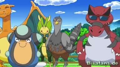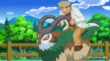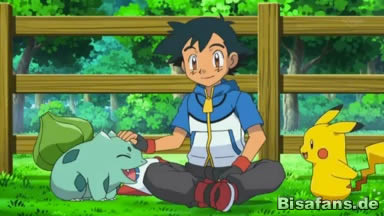 Im Labor interviewt Alba gerade den Professor, der erklärt, dass Trainer, die von ihm ihr erstes Pokémon erhalten haben, gefangene Pokémon zum Labor schicken. Sollte es zu Streit unter den Pokémon kommen, ist es meist Ashs Bisasam, das dabei hilft, die Gemüter zu beruhigen. Genau in diesem Moment kommt auch Ash, doch als er sein Bisasam, das ihm entgegen läuft, begrüßen will, wird er von seinen Tauros niedergerannt.