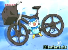 Nur etwas später treffen die beiden auf ein wildes Burmy. Doch auch hier will das mit dem Fangen nicht so recht klappen. Gerade als sich Lucia selbst ermuntert, hört sie in einem nahen Gebüsch etwas rascheln. Schnell stellt sich heraus, dass es sich um ein Pikachu handelt. Beim Versuch das Pikachu zu fangen setzt Pikachu eine Elektro- Attacke ein, die Lucias Fahrrad ziemlich "durchbrät". Als Lucia einen Pokeball nach Pikachu wirft, wundert sie sich etwas. Sie kann ja nicht wissen, dass dies das Pikachu von Ash ist.