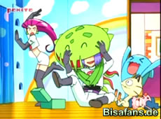 Auch Jessie und James haben Glück. Sie finden einen Ferien-Wohnsitz von James Familie, in dem sich alle etwas ausruhen können. Speziell James freut sich über ein Wiedersehen mit seiner ersten Kronkorkensammlung, die er mit 2 Jahren anlegte. In einem alten Pokeball hat er sogar noch ein Venuflibis, welches sich direkt auf James Kopf festsetzt.