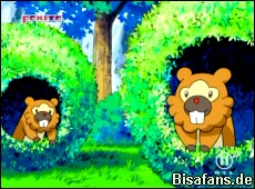 Ash, Lucia und Rocko begegnen unterdessen einem Bidizia, welches verängstigt zu sein scheint. Nachdem Rocko sich um das Bidiza gekümmert hat, ist es viel zutraulicher. Gerade als sie das Bidiza zu seinen Freunden zurückbringen wollen, kommt Team Rocket angerannt, welches immer noch von dem wütenden Stahlos verfolgt wird. Nun sind alle gezwungen zu flüchten.
