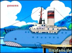 Es kommt noch Schlimmer als Team Rocket versucht an Bord die Pokémon zu verführen und einzufangen. Dank Pachirisu kann dies jedoch verhindert werden. Es bleibt aber das Problem, dass der Dampfer auf einen Wasserfall zusteuert. Unsere Freunde und der alte Mann sind inzwischen im Hafen angekommen und bemerken die Abfahrt des Dampfers. Der Mann ruft sein Mantax um es zum Schiff loszuschicken, während die Pokémon an Bord selbständig eine Rettung organieren. So gehen Wonneira und Pachirisu auf Staravia um das Schiff zu verlassen. Pikachu und Plifa organisieren auch die restliche Rettung vom Schiff.