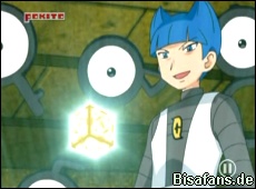 Unterdessen hat Team Galaktik mit seinem Bonzel eine Kammer in der Ruine erreicht, an dem verschiedene Elementtafeln eingesetzt werden. Daraufhin leuchtet der Raum und neben vielen Icognito erscheint auch ein antiker Würfel mit angeblich gigantischer Macht. Das Bronzel greift nun die Icognito mit einem Konfustrahl an, woraufhin es eine so große Druckwelle gibt, dass auch unsere Freunde ausserhalb der Ruinen davon etwas merken. Es kommt sogar soweit, dass unsere Freunde und ihre Pokémon in die Ruinen fallen. Team Galaktik macht sich dabei gemütlich aus dem Staub und erzählt noch etwas von der Speersäule.