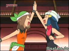 Max ist übrigens zu Hause und lernt fleißig um ein so guter Pokémon-Züchter wie Rocko zu werden. Maike war aber auch nicht untätig und präsentiert allen ihr neues Glaziola, welches sie hier in Sinnoh aus ihrem Evoli entwickeln ließ! Auf Anfrage von Ash erfahren wir auch, dass Maike bereits 3 Johto-Bänder errungen hat. Harley und Drew sollen auf einem ähnlichen Niveau sein. Ihr Ausflug zum Wassili-Cup soll eine aktuelle Verlust-Serie beenden. Lucia findet dies toll und will gemeinsam mit Maike diese Chance für einen Neustart nutzen.
