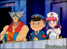 Ash, James, Jessie, Lucia, Marninus (Arenaleiter), Rocko, Schwester Joy