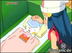 Lucias Haspiror gibt Pachirisu sein Kleidchen, damit dem kranken Pokémon wärmer wird. Danach wird mit Hilfe eines Eimers Wasser, Haspirors Eisstrahl und der Kraft Wonneiras Eis hergestellt um Pachirisu zu kühlen. Lucia ist darüber jedoch nicht wirklich erfreut und schiebt Ash die Schuld für Pachirisus Krankheit zu. Schließlich hatte Ash es vor einiger Zeit zu kalt geduscht.