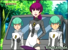 Team Rocket versteckt sich in einer Seitenstrasse von Elyses vor den vielen Polizisten. Dabei werden sie von einem Team Galaktik Golbat sowie von Ashs Staravia entdeckt, wie sie in Richtung der Ruinen gehen. Carolina und Zyrus sind zufällig auch gerade bei den Ruinen und betrachten voller Trauer die Schäden an dem historischen Gebäude. Dabei bemerkt Zyrus als erster Team Rocket, die sich hier herumschleichen.