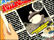 Rocko bemerkt in einer Tageszeitung ("Sinnoh Star") einen Artikel zu einem "gigantischem Schal-Mmonster in Trostu". Interessant, doch nun geht es weiter zur Tagesstätte von Angies Eltern, die hier in der Nähe sein soll. Wie es der Zufall so will, bemerken alle unterwegs (es ist bereits dunkel) einen mysteriösen Schatten abseits des Weges.